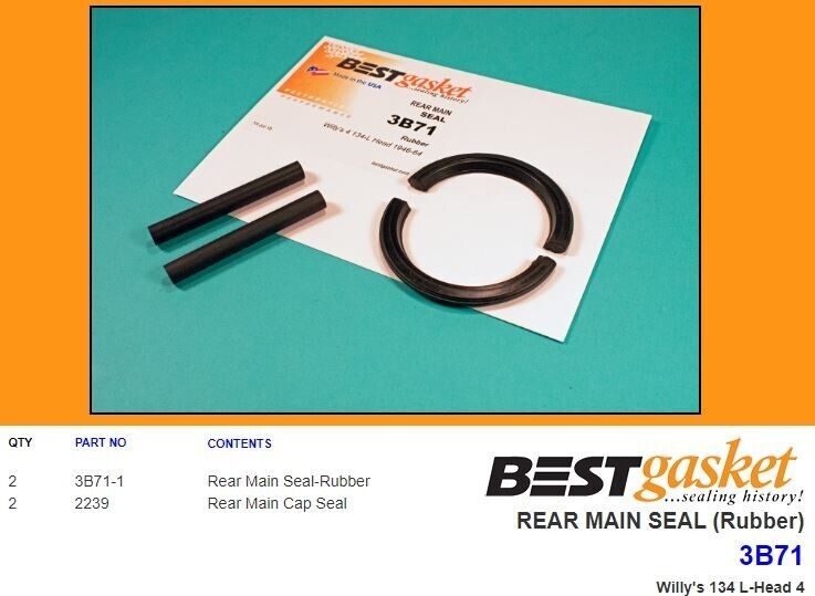 This item is for a Best Gasket RUBBER rear main seal for 1946-1964 Willys/Jeep 134ci 4-cylidner engines; includes both L-head F-head designs. P/N 3B71. Feel free to message us with any fitment questions.