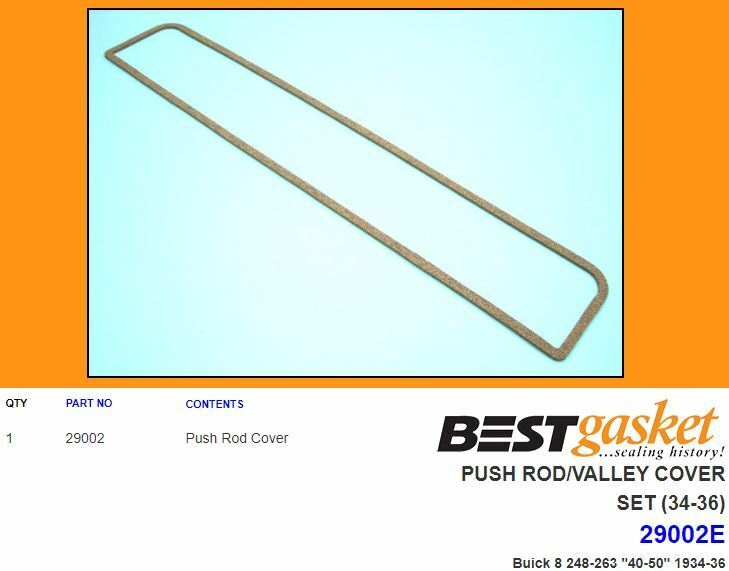 Another great vintage listing from Falcon Classic! This listing is for a BEST Gasket pushrod/valley cover gasket set for 1934-36 Buick 233ci 40 small series. P/N 29002E. BEST Gasket is the leading name in sealing performance in the restoration ind