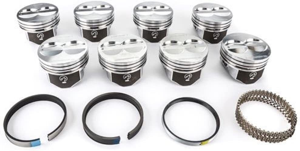 This item is for eight (8) .030 over bore Sealed Power hypereutectic flat top pistons, a moly piston ring set (Hastings/MAHLE), and (16) wrist pin clips (locks) for 1992-1997 GM models using the 5.7L (350ci) LT-1 V-8 engines; VIN-P. P/N (8) H597DCP-030 + 2M4626-030 + (16) LR63.