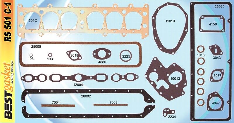 Another great vintage listing from Falcon Classic! This listing is for a BEST Gasket full engine gasket set for 1932 Chevrolet Master 194 "stovebolt" 6-cylinder engines. P/N RS501C-1. BEST Gasket is the leading name in sealing performance in the restoration industry. Image shown is an actual factory supplied picture.